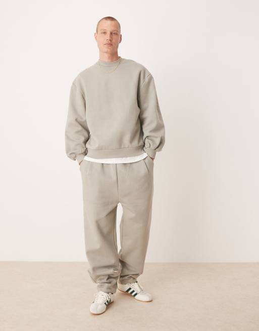 ASOS DESIGN Premium – Beżowe grube joggersy z szerokimi nogawkami, zakładkami i zaszewkami na dole