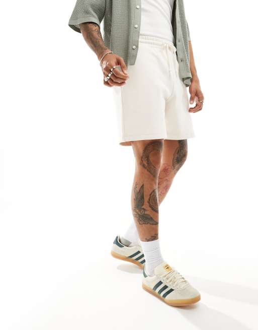 ASOS DESIGN Premium – Białe grube szorty oversize z efektem sprania