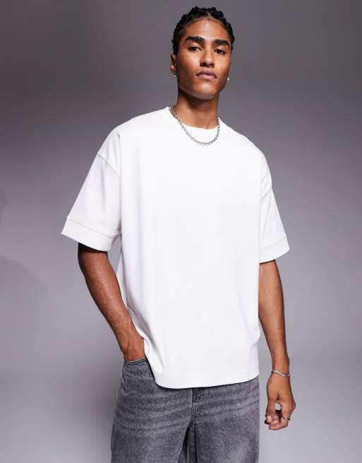ASOS DESIGN Premium – Biały T-shirt oversize ze szwami interlock