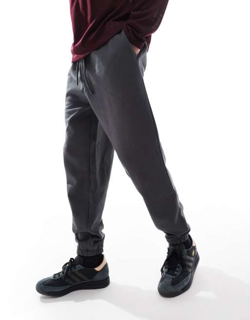 ASOS DESIGN Premium – Czarne zwężane joggersy o gramaturze 400 g/m² z efektem sprania