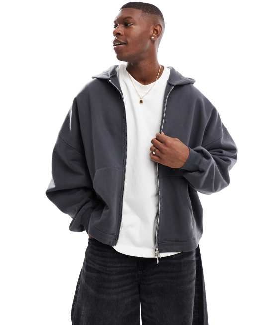 ASOS DESIGN Premium – Grafitowa zapinana na zamek bluza oversize z kapturem o gramaturze 400 g/m²