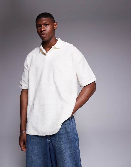 ASOS DESIGN – Premium – Gruba teksturowana koszulka polo oversize w kremowym kolorze