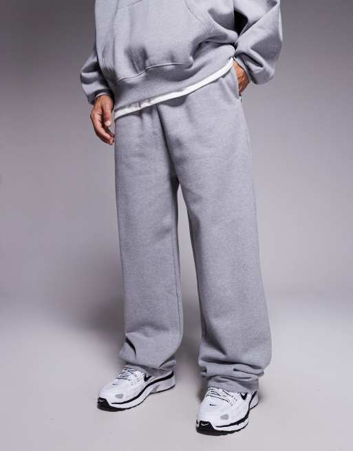 ASOS DESIGN – Premium – Grube joggersy z szerokimi nogawkami w szarym melanżowym kolorze o gramaturze 400 g/m²