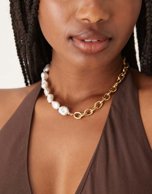 ASOS DESIGN – Premium – Platerowany 14-karatowym złotem naszyjnik łańcuszkowy ze sztucznymi perłami