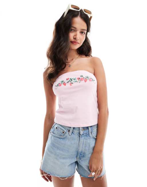 ASOS DESIGN – Prześwitujący różowy top bandeau z nadrukiem truskawek