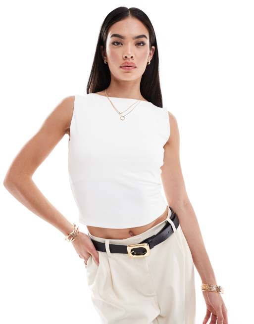 ASOS DESIGN – Przylegający top bez rękawów w kolorze kości słoniowej