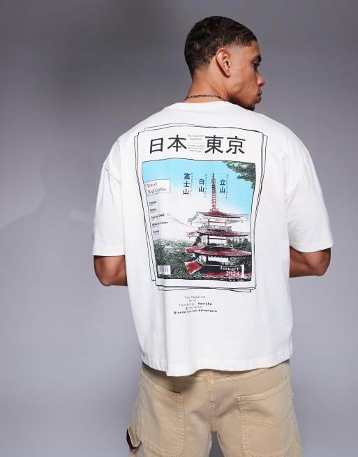 ASOS DESIGN – Pudełkowy T-shirt oversize w kolorze złamanej bieli z ozdobną grafiką