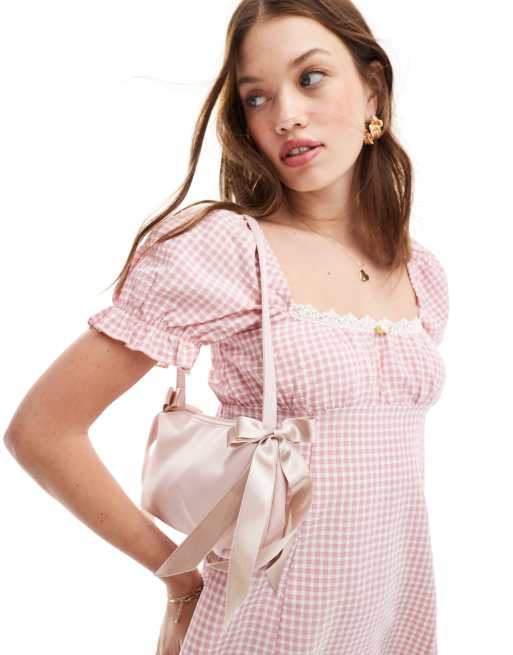 ASOS DESIGN – Pudroworóżowa torebka na ramię z dwoma kokardkami