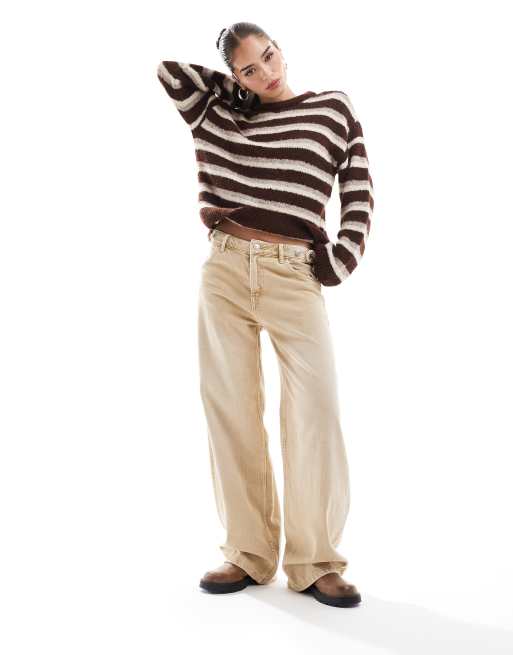 ASOS DESIGN – Puszysty dzianinowy sweter z imitacji wełny w bordowo-czekoladowe paski