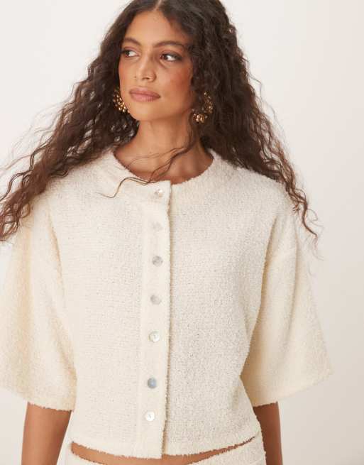 ASOS DESIGN – Puszysty kremowy kardigan o pudełkowym kroju z obniżoną linią ramion