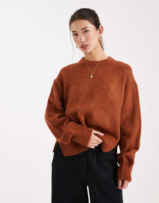 ASOS DESIGN – Rdzawobrązowy sweter o pudełkowym kroju z okrągłym dekoltem i rozcięciem z boku