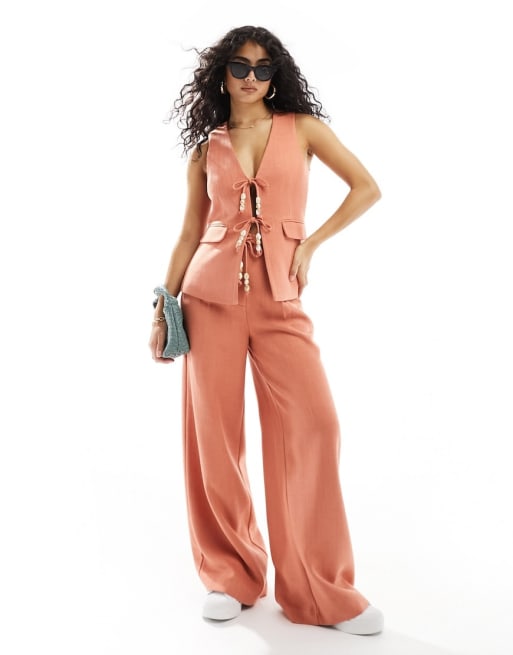 ASOS DESIGN – Rdzawy fakturowany zestaw z wiązaniem z koralikami