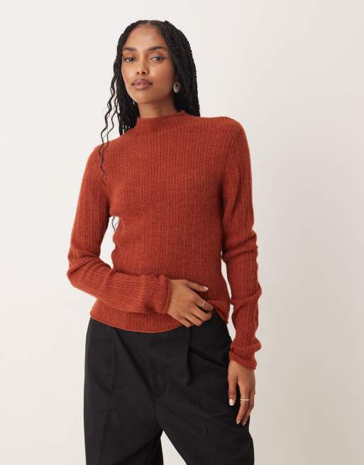 ASOS DESIGN – Rdzawy top o luźnym kroju z golfem z prążkowanej dzianiny