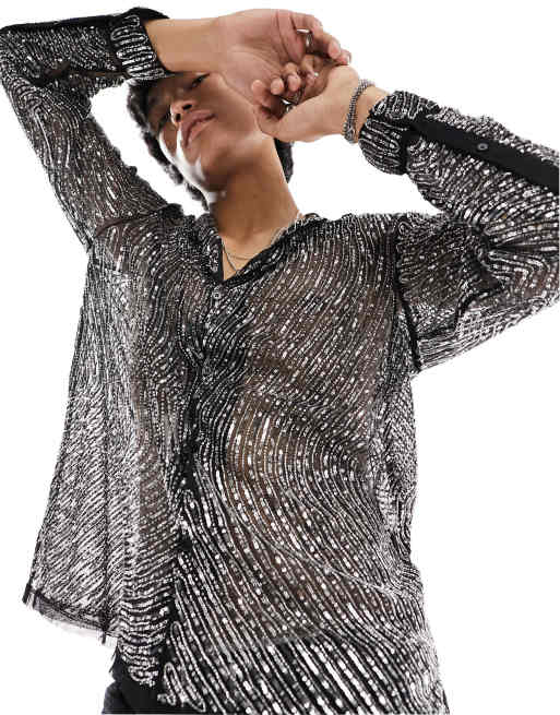 ASOS DESIGN – Ręcznie zdobiona czarna koszula wierzchnia z falistym wzorem