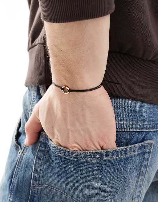 ASOS DESIGN – Regulowana czarna bransoletka ze sznurka z metalową pętelką