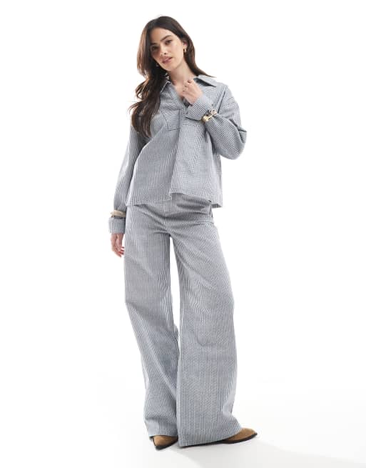 ASOS DESIGN – Regulowane w talii jeansy w granatowe paski