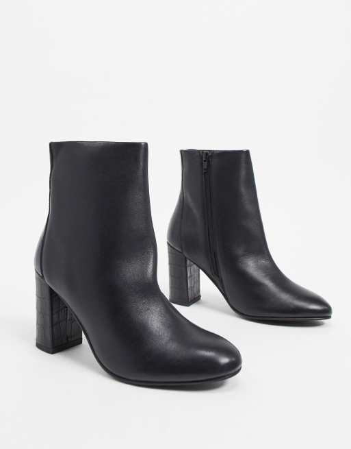 ASOS DESIGN – Resilient – Czarne skórzane botki na obcasie