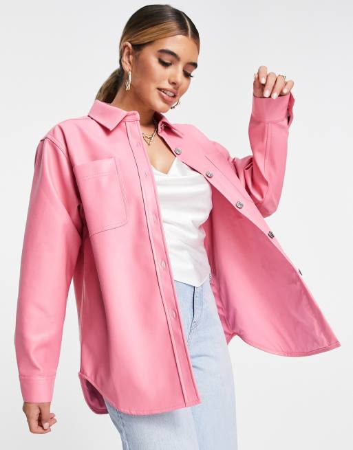 ASOS DESIGN – Różowa koszula wierzchnia z imitacji skóry