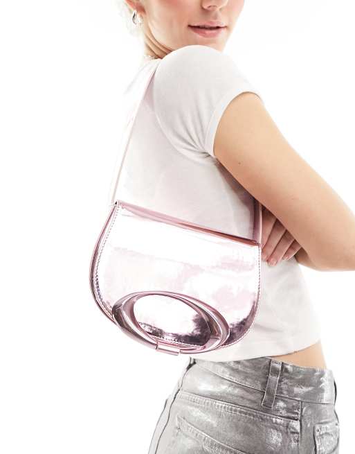 ASOS DESIGN – Różowa metaliczna torebka na ramię z metalowym kółkiem