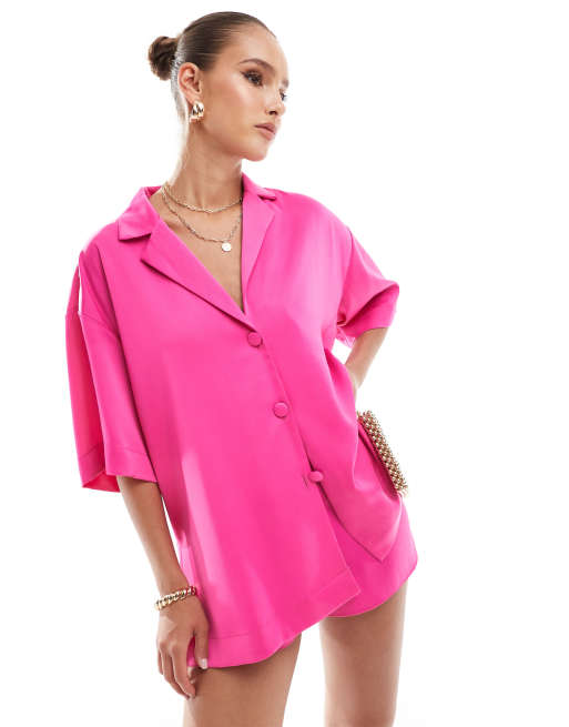 ASOS DESIGN – Różowa satynowa koszula z kołnierzykiem kubańskim, część zestawu