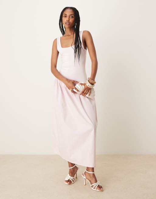 ASOS DESIGN – Różowa sukienka maxi z mieszanki popeliny z kwadratowym dekoltem