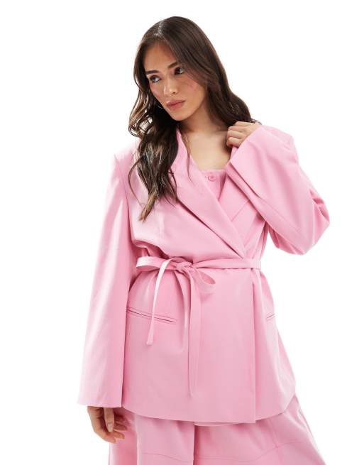 ASOS DESIGN – Różowa zbierana w talii elegancka marynarka oversize, część zestawu