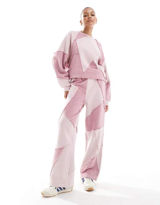 ASOS DESIGN – Różowe joggersy z prostymi nogawkami w patchworkowy wzór, część zestawu