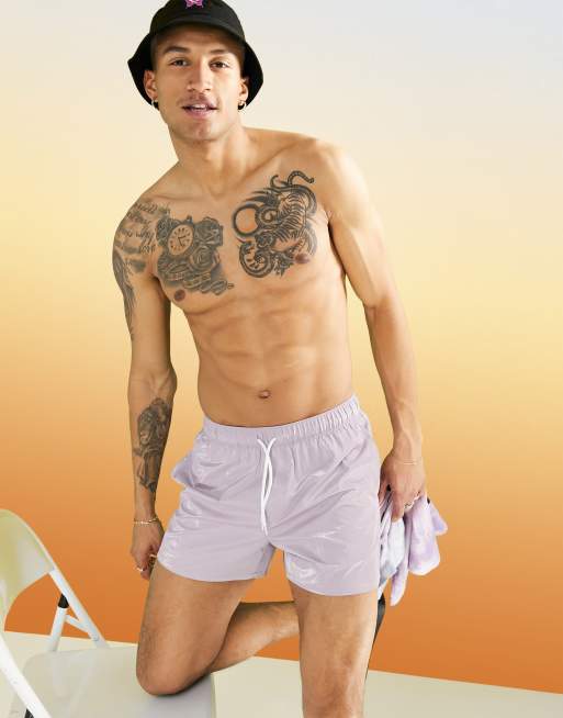 ASOS DESIGN – Różowe krótkie szorty kąpielowe z efektem wet look