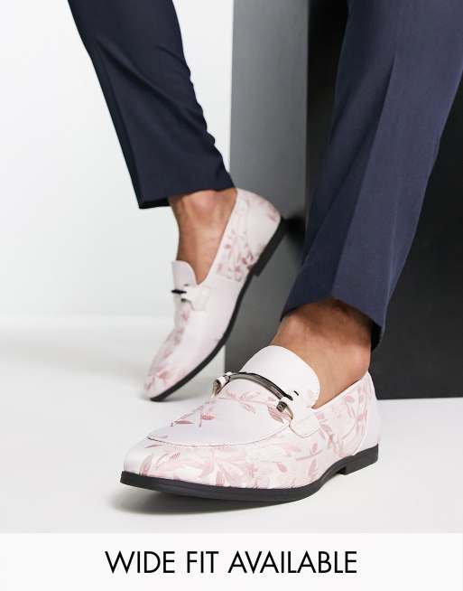ASOS DESIGN – Różowe loafersy z imitacji skóry z ozdobną sprzączką w kwiatowy wzór