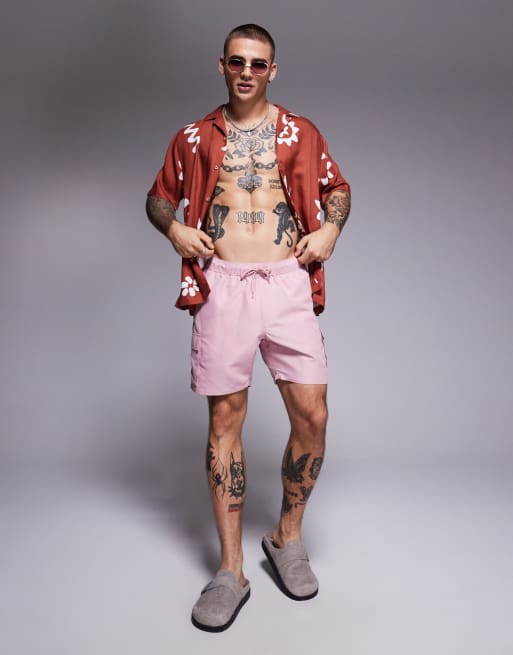 ASOS DESIGN – Różowe średniej długości szorty kąpielowe z bojówkowymi kieszeniami