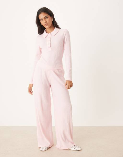 ASOS DESIGN – Różowe szczotkowane spodnie z szerokimi nogawkami, część zestawu