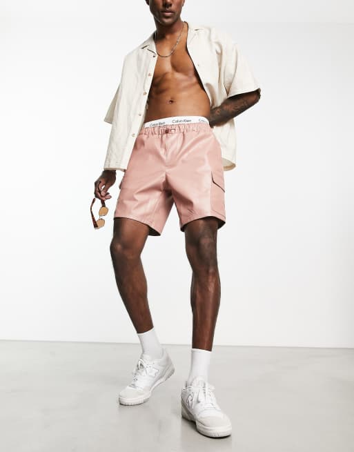 ASOS DESIGN – Różowe szorty bojówki z imitacji skóry średniej długości