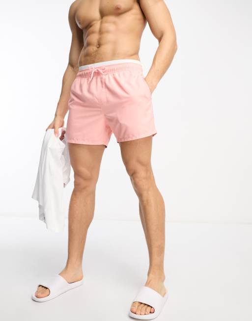 ASOS DESIGN – Różowe szorty kąpielowe o skróconej długości z kontrastową talią