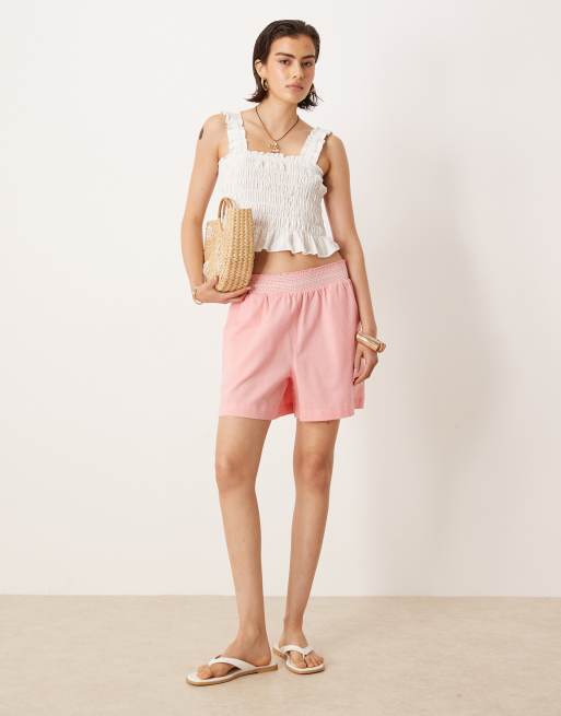 ASOS DESIGN – Różowe szorty z marszczoną talią z białymi detalami