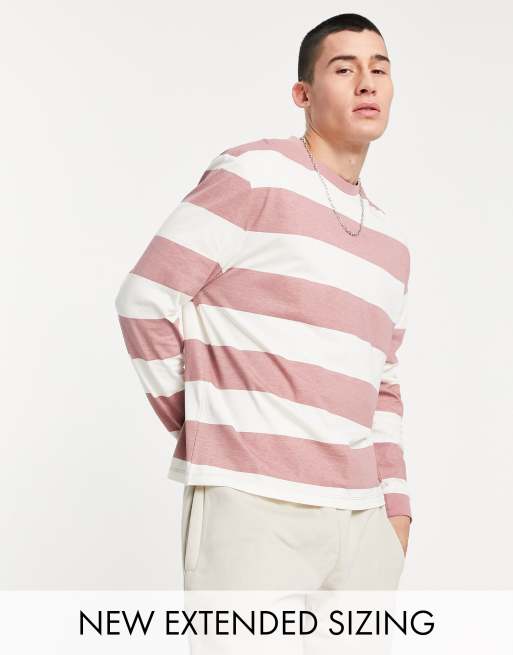 ASOS DESIGN – Różowo-biały luźny T-shirt w paski z długimi rękawami