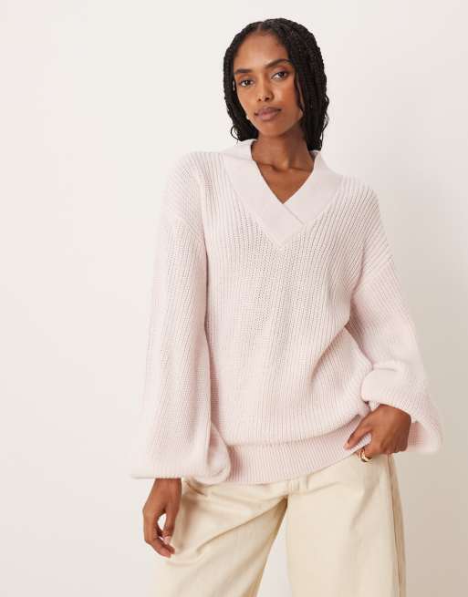 ASOS DESIGN – Różowy sweter oversize z dekoltem w kształcie litery V z dzianiny z mieszanki wełny