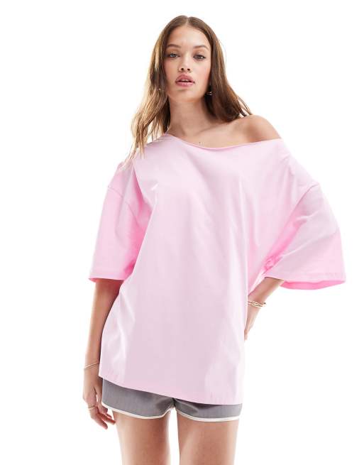ASOS DESIGN – Różowy T-shirt o luźnym kroju z odsłoniętym ramieniem