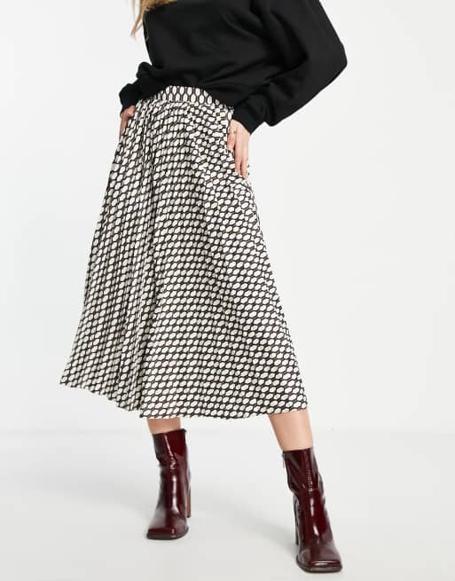 ASOS DESIGN – Satynowa, plisowana spódnica midi z geometrycznym wzorem