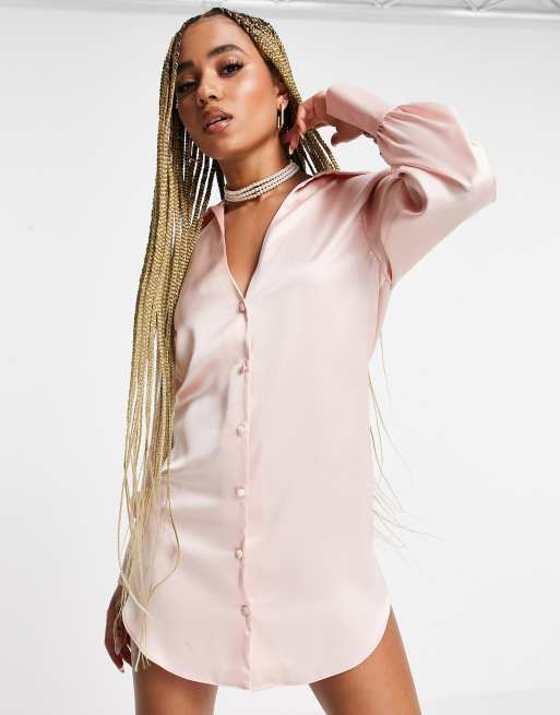 ASOS DESIGN – Satynowa sukienka koszulowa mini o bardzo luźnym kroju z głębokim dekoltem