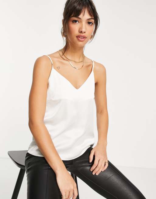 ASOS DESIGN – Satynowy top na ramiączkach w kolorze kości słoniowej