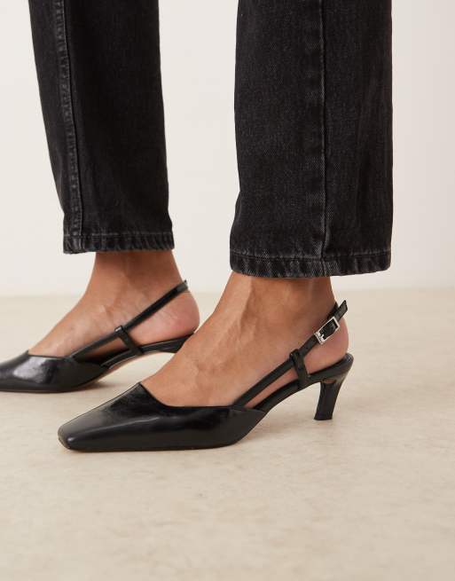 ASOS DESIGN – Shadow – Czarne buty na średnim obcasie ze skośnymi noskami i paskami za piętą