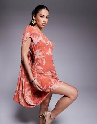 ASOS DESIGN – Siateczkowa sukienka mini na jedno ramię z drapowaniem w kwiatowy wzór