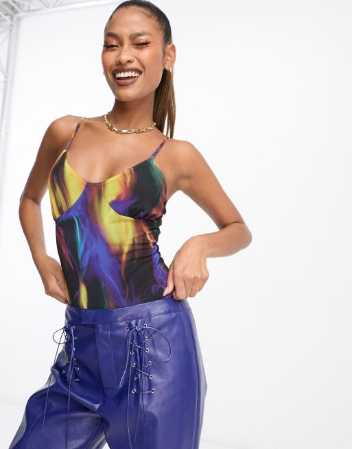 ASOS DESIGN – Siateczkowe body na ramiączkach z miseczkami i graficznym nadrukiem