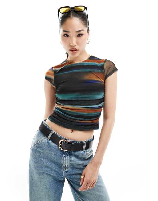 ASOS DESIGN – Siateczkowy T-shirt z krótkimi rękawkami we wzór