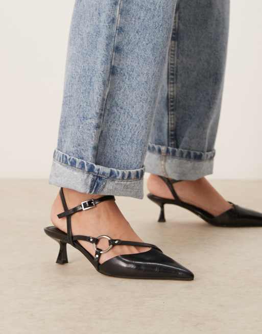 ASOS DESIGN – Sissi – Czarne buty na obcasie-kaczuszce z ozdobnym pierścieniem
