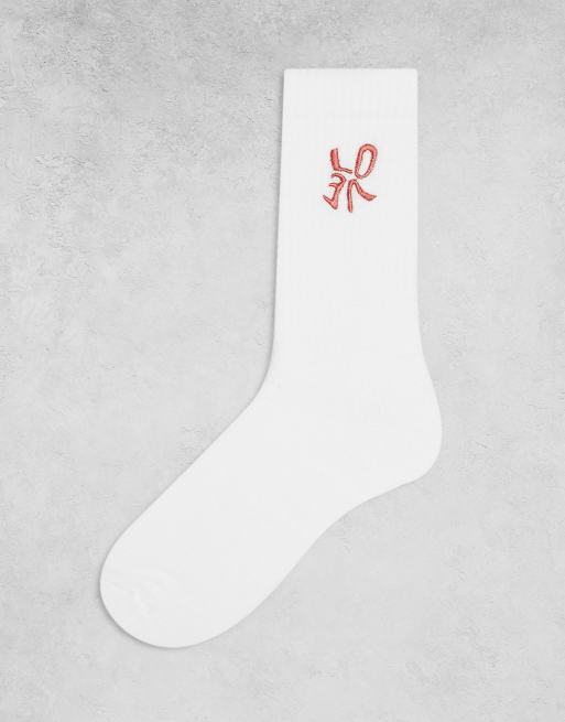 ASOS DESIGN – Skarpetki w kolorze ecru z wyhaftowanym napisem „Love”