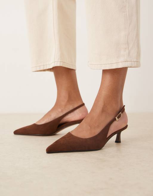 ASOS DESIGN – Skip – Czekoladowe zamszowe buty na obcasie-kaczuszce z paskami za piętą
