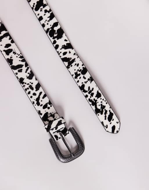 ASOS DESIGN – Skórzany pasek z włosiem we wzór w krowie łaty w kowbojskim stylu