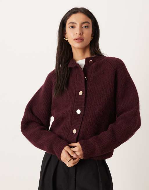 ASOS DESIGN – Śliwkowy kardigan z dzianiny o splocie patentowym z raglanowymi rękawami