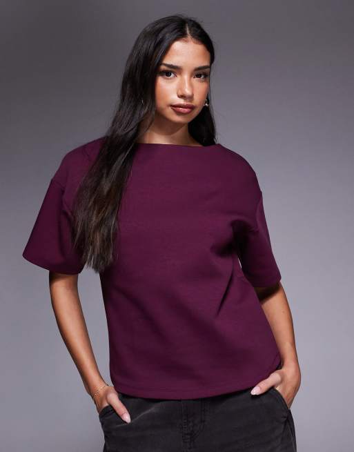 ASOS DESIGN – Śliwkowy top z dekoltem w łódkę i rękawami do łokci